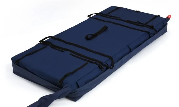 The system is made up of a digital control unit with twin membrane pumps, guaranteeing fast inflation and operation of the system. The mattress, with 20 air cells, 17 of which can be decoupled from the main system to provide pressure free zones and is Ideal for prone positioning in cases of (ARDS) Acute Respiratory Distress Syndrome with COVID-19 patients.