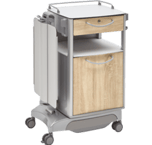 Auch im Krankenhaus haben Patienten die kleinen persönlichen Dinge des täglichen Lebens bei sich. Die Armbanduhr, die Lesebrille, das Smartphone – dies sind notwendige und wertvolle Gegenstände, die ihren Platz brauchen. Unsere Nachttische bieten vielfältigen sicheren Stauraum und sind für die Patienten leicht zugänglich. Höhenverstellbare und schwenkbare Betttische eignen sich für Mahlzeiten ebenso gut wie für die Lektüre von Büchern und Zeitschriften.