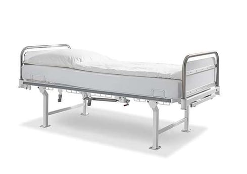 Für sicherheitstechnisch besonders sensible Bereiche in der Psychiatrie ist unser Krankenhausbett Vivendo pro pro besonders gut geeignet. Erfahrungen unserer Kunden und Anforderungen aus der Praxis in geschützten Bereichen der Psychiatrie waren die Basis für die Festlegung der nachstehend beschriebenen 3 Varianten des Psychiatriebettes. Für alle Ausführungen gilt, dass im Interesse größtmöglicher Sicherheit konsequent auf motorische Verstellungen verzichtet wird. Darüber hinaus können auch die mechanischen Verstellmöglichkeiten auf Wunsch eingeschränkt oder die Erreichbarkeit der Bedienung von Gasdruckfedern und Hydrauliken erschwert werden. Die Liegefläche besteht aus eingeschweißten Stahlgitterböden, die gegen Entnahme gesichert sind. Außerdem schützen weitere spezielle Sicherungen das Bett vor Vandalismus.